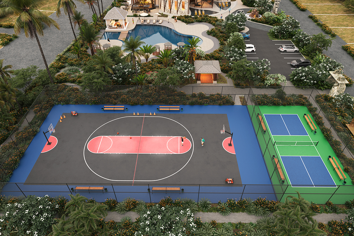 - Multi‑sport courts (tennis, basketball, turf, badminton)